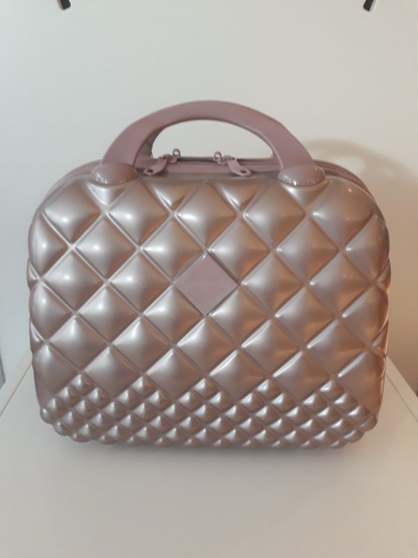 beauty rigido in abs antigraffio, due maniglie, supporto elastico per carrello, due scomparti interni divisi da cerniera, sei portaoggetti e quattro piedini, cerniera con doppio cursore predisposta per lucchetto